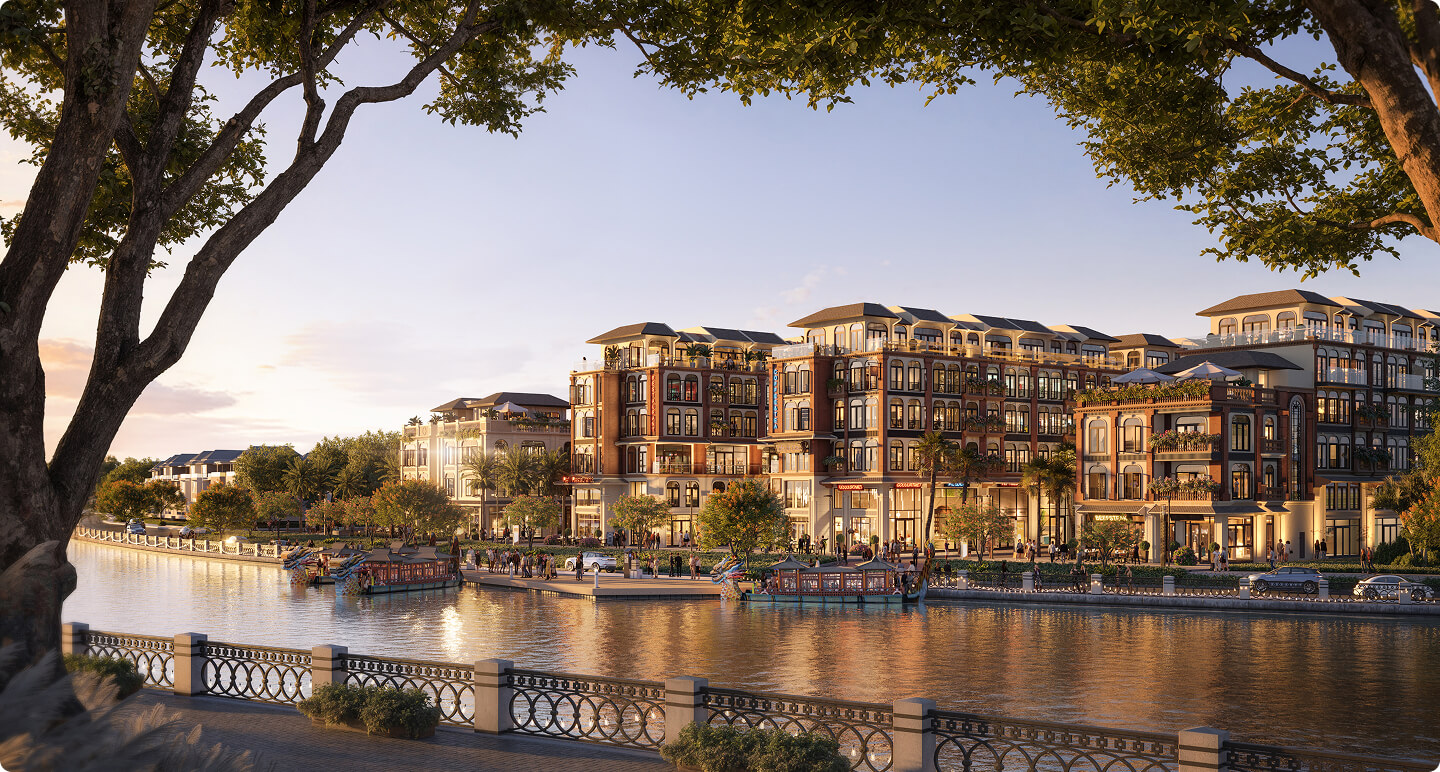 Khu nhà phố thương mại gồm 33 căn được thiết kế với tầm nhìn kiến trúc kép độc đáo. Không gian nhà phố linh hoạt, phù hợp với nhiều mô hình kinh doanh như quán cà phê, nhà hàng, cửa hàng thời trang, văn phòng làm việc…