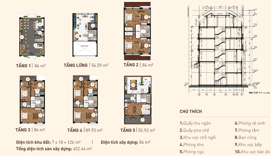 Thiết kế linh hoạt, được tinh chỉnh để tối ưu hóa hiệu quả. Không gian dành cho ngành dịch vụ được bố trí khéo léo, với khu vực tiếp khách ấm cúng, quy trình vận hành mạch lạc.