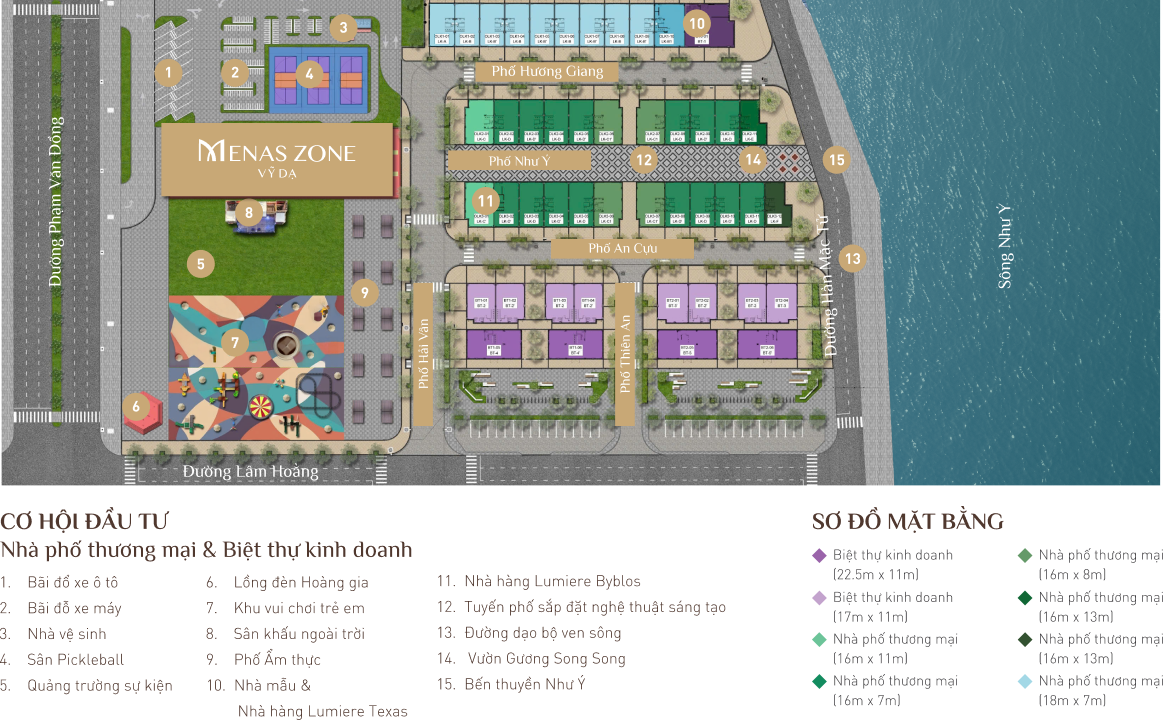 Từ bàn tay tài ba của những đối tác đẳng cấp quốc tế đã tạo nên Menas Zone Vỹ Dạ với thiết kế độc đáo với tầm nhìn kiến trúc kép, vừa kiến tạo không gian sống tiện nghi, vừa mở ra cơ hội kinh doanh đột phá nhưng vẫn thấm đượm hồn cốt xứ Kinh Kỳ. Tại đây sẽ diễn ra các hoạt động triển lãm nghệ thuật và biểu diễn văn hóa đặc sắc, các sự kiện đẳng cấp quốc tế hấp dẫn lên tới hàng nghìn người.